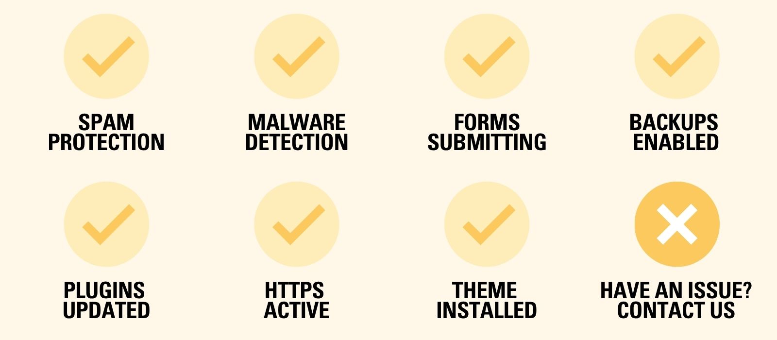 - Security and maintenance: HTTPS, updates, backups, plugin health, and malware checks.